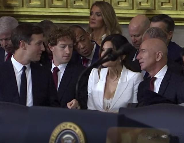 在老特朗普的就职典礼上,一场引人关注的“小插曲”发生了。华盛顿特区国会大厦圆形大厅中,Facebook创始人马克·扎克伯格似乎被杰夫·贝索斯的未婚妻劳伦·桑切斯吸引住了目光。桑切斯与未婚夫、亚马逊创始人杰夫·贝索斯一同参加了这场历史性仪式。